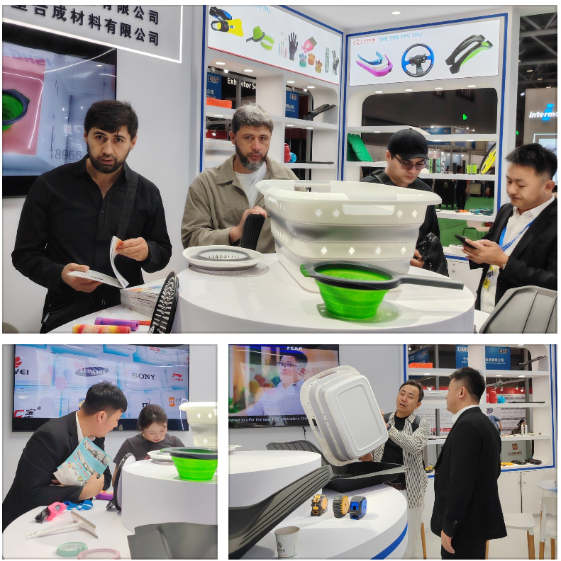 中塑企業在展位上通過實物展示與互動體驗,生動呈現了TPE材料在汽車配件、家居用品、兒童玩具、運動器材、醫療器械等領域的廣泛應用。例如: